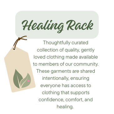 Healing Rack is a curated clothing resource that circulates quality community donations with care—supporting confidence, dignity, and new beginnings through intentional redistribution.